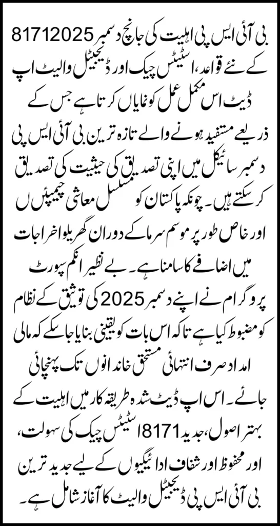 Digital Wallet Update: The New BISP Financial System for December 2025