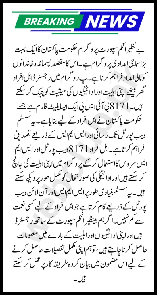 Eligible individuals can use the 81 71 web portal and SMS service to check their eligibility in the program and see the payment status completely. This system works mainly through SMS and online web portal which is no less than a blessing for the eligible individuals. If we are registered with Benazir Income Support and want to get information about our payments and eligibility, we can follow the procedure outlined in this article to receive our complete details.