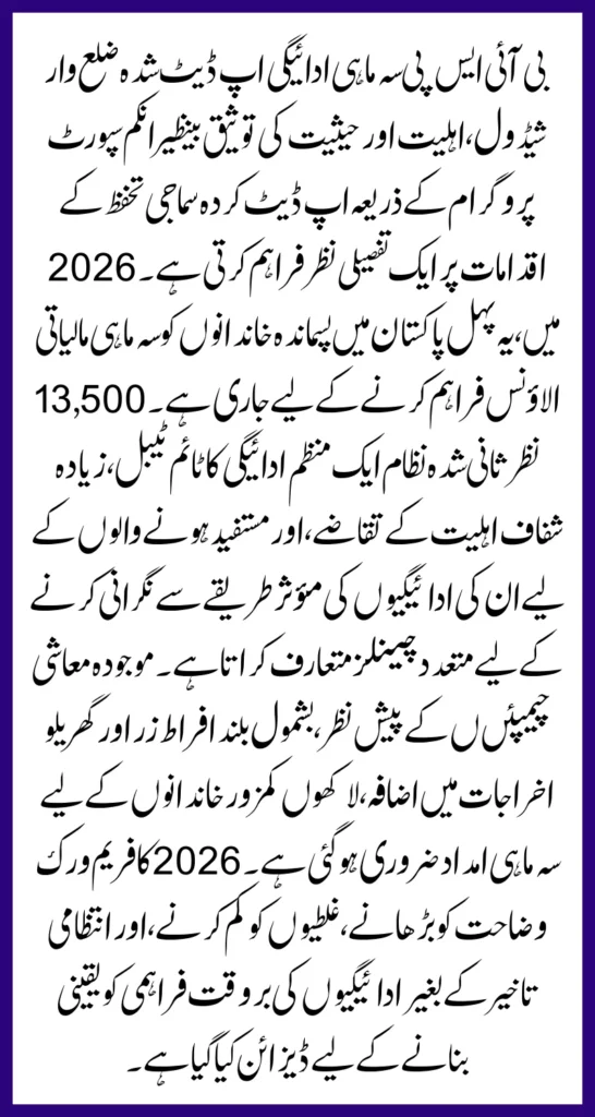 Previously, nationwide payment releases caused significant logistical challenges, including long lines, slow verification, and crowding at distribution centers. To resolve these problems, BISP adopted a district-wise payment system in 2026.