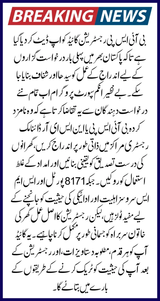 The 8171 BISP Registration Guide for 2025 has been updated to make the enrollment process straightforward and transparent for first-time applicants across Pakistan. The Benazir Income Support Programme (BISP) now requires all new applicants to register in person at designated BISP or NSER Dynamic Registry Centers, ensuring accurate verification of households and preventing misuse of aid. While the 8171 portal and SMS services are useful tools for checking eligibility and payment status, the actual registration process must be completed physically by the female head of the household. This guide will walk you through every step, required documents, and methods to track your status after registration.