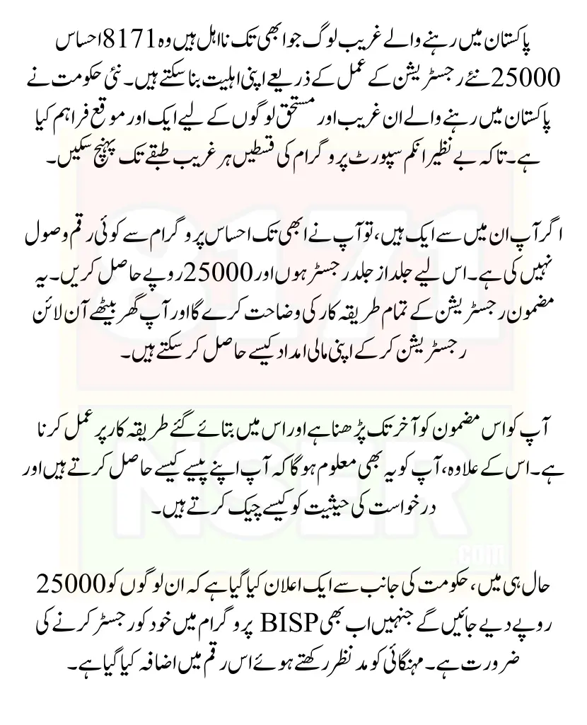 Also, those who have joined the BISP program and are getting rich from it can check their amounts on the 25000 online portal 8171.