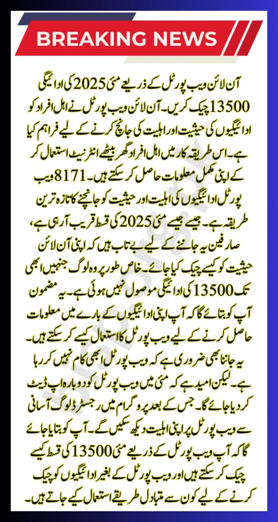 8171 Web Portal 2025 Check Online 13500 For May Installment