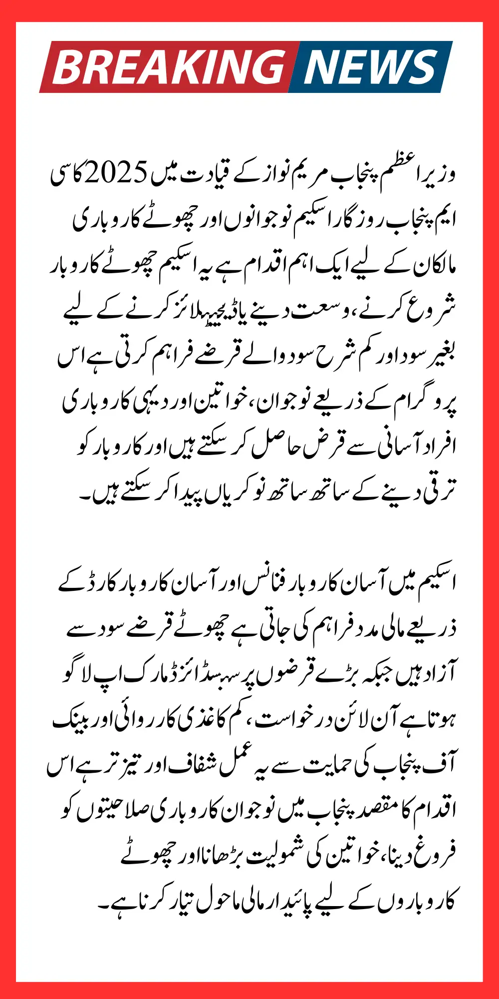 CM Punjab Rozgar Scheme 2025 is more than financial assistance It is a commitment to empowering Pakistan youth with real opportunities with simple eligibility online application and government-backed security it provides entrepreneurs the they need to grow their businesses create jobs and contribute to the economy if you are a young entrepreneur small business owner or freelancer in Punjab this is the right time to start your journey Apply online today and take the first step toward building a successful business in 2025.