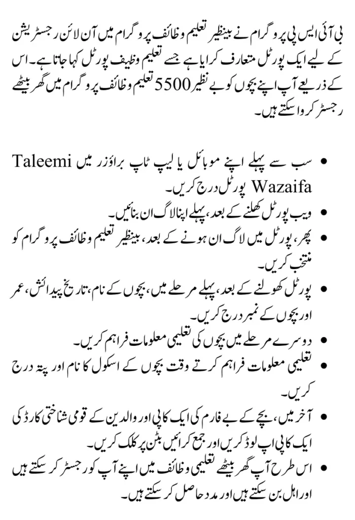 Benazir 5500 Taleemi Wazifa Online Registration Procedure