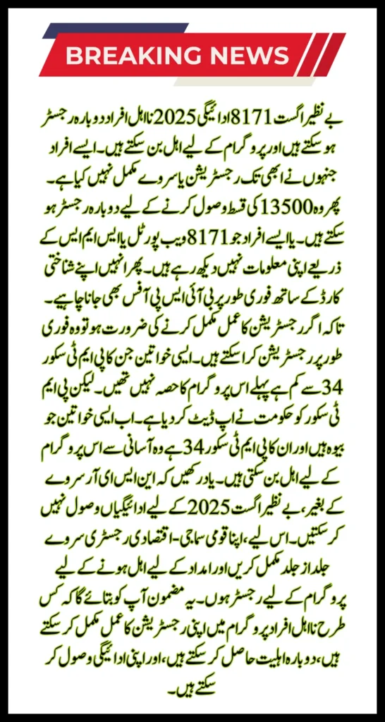 Benazir August 8171 Payment 2025 Re-registration