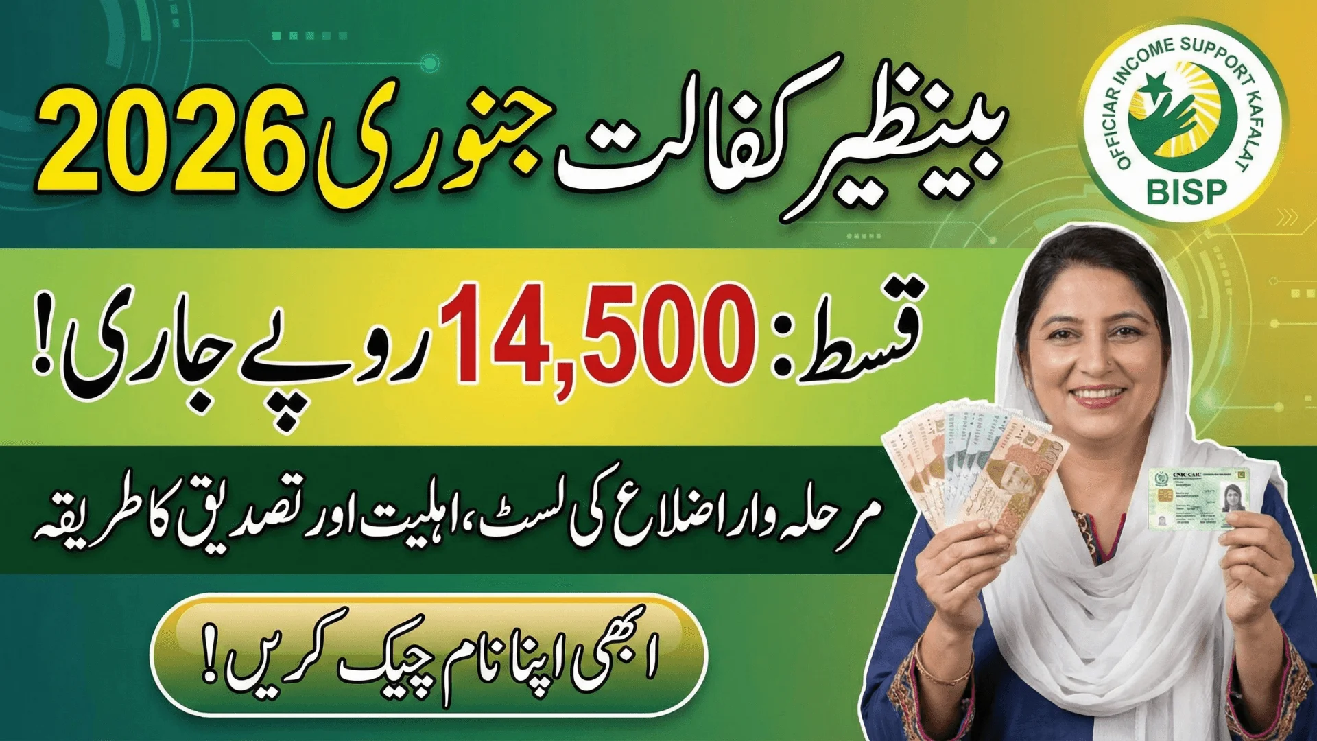The January 2026 installment under the Benazir Kafalat Program has officially launched to support deserving families registered in the National Socio-Economic Registry (NSER). This time, the payment amount has set at Rs. 14,500, reflecting adjustments made to cope with inflation and household needs.