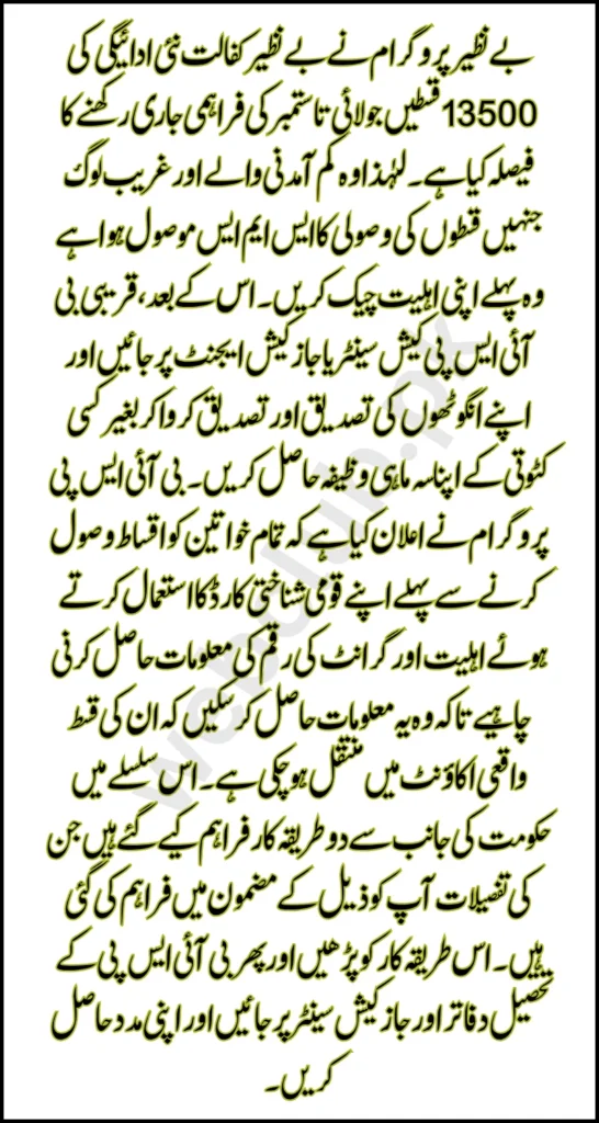 Check Eligibility In Benazir Kafaalat New Payment 13500
