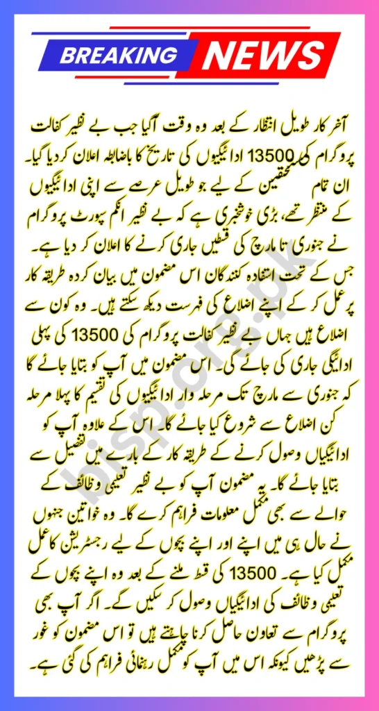 Benazir Kafaalat New Payment 13500