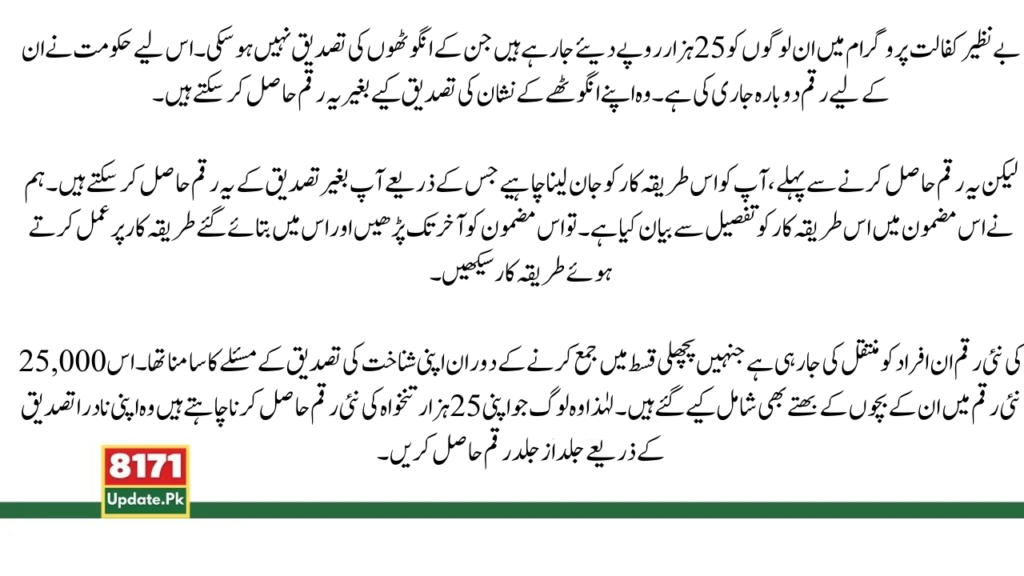 New Payment Benazir Kafalat Program 2025(بغیر فنگر پرنٹ کی تصدیق کے)
