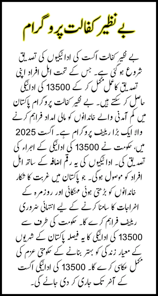 The August 13,500 payment under the Benazir Kafalat Program is of great importance. Because this amount of payment is a milestone for low-income families. Especially in view of the rising inflation and economic challenges, this amount will enable the deserving families to meet their needs like food, healthcare and education. This will improve their standard of living and they will be able to meet their daily expenses easily without any hassle. The Benazir Kafalat Program is playing an important role in poverty alleviation and women empowerment across Pakistan. In this program, a payment of 13,500 is provided to deserving women. The payment of 13,500 is of great importance to such women who have been waiting for their payments for several months. Such women will be able to receive their payments as soon as possible.
