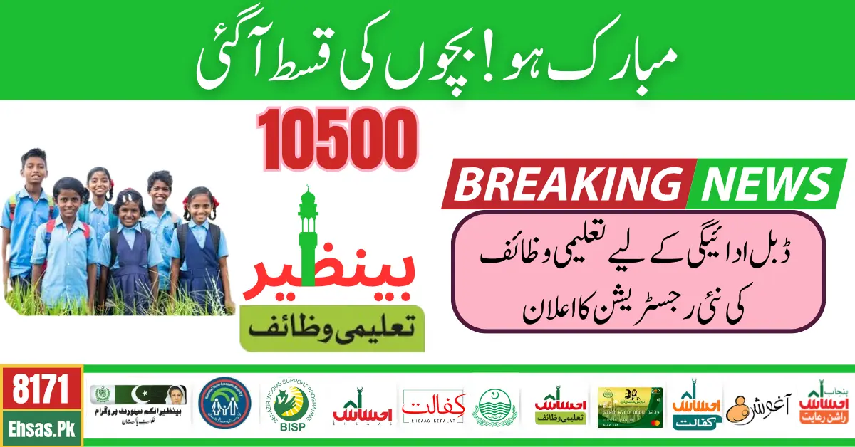 Benazir Taleemi Wazaif 10500: Benazir Income Support Program has started the Benazir Taleemi Wazaif 10500 double Qist, which you will begin to getting from the 15th of next month. Parents who are registered under the Benazir Kafalat Program are happy to know that their children’s Taleemi Wazaif has arrived, and they will be able to receive their Benazir Kafalat Program with the first quarterly installment.