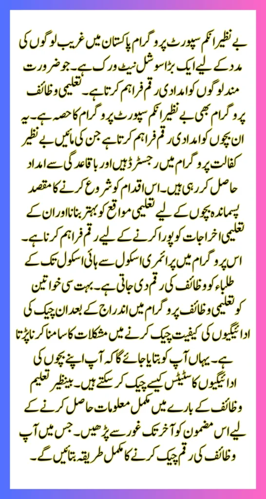 Benazir Taleemi Wazaif Balance Check