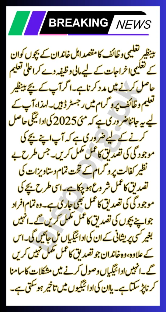 Important Information Regarding Benazir Taleemi Wazaif 2025