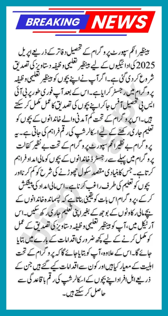Payment Details For Benazir Taleemi Wazifa