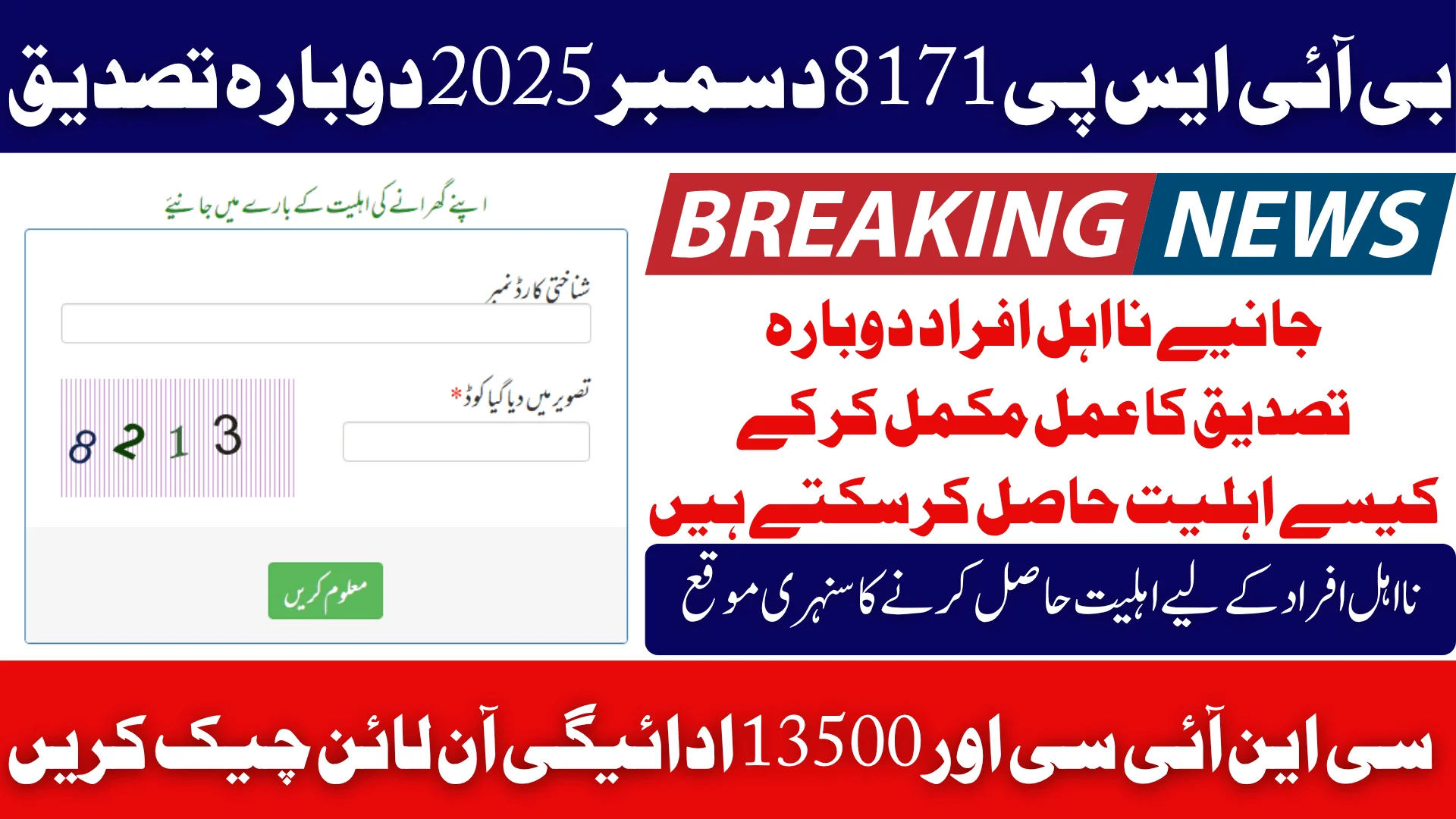 BISP 8171 December 2025: BISP 8171 December 2025 Reverification Check CNIC & 13500 Payment Online is now one of the most important steps for beneficiaries who receive quarterly financial support under the Benazir Income Support Programme. As BISP continues modernizing its verification and payment system, the government has launched a comprehensive reverification campaign to ensure that only eligible families receive the Rs. 13,500 installment.