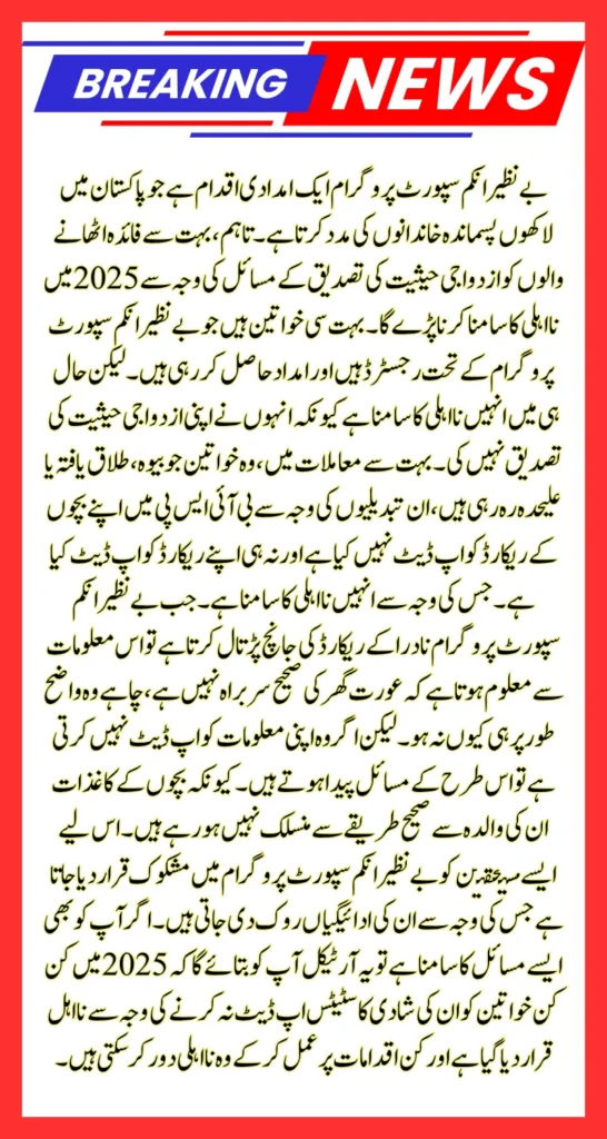 When Benazir Income Support Program cross-checks with NADRA records, it seems from this information that the woman is not the rightful head of the household, even if she is clearly the one. But if she does not update her information, then such problems arise. Because the documents of the children are not being properly linked to their mother. Therefore, such beneficiaries are declared suspicious in the Benazir Income Support Program, due to which their payments are suspended. If you are also facing such problems, then this article will tell you which women have declared ineligible in 2025 due to not updating their marriage status and by following what steps they can remove the ineligibility.