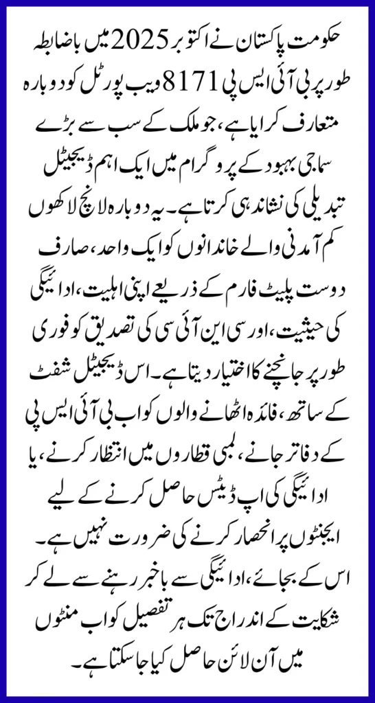 BISP 8171 New Web Portal: The Government of Pakistan has officially reintroduced the BISP 8171 Web Portal in October 2025 marking a significant digital transformation in the country largest social welfare program.