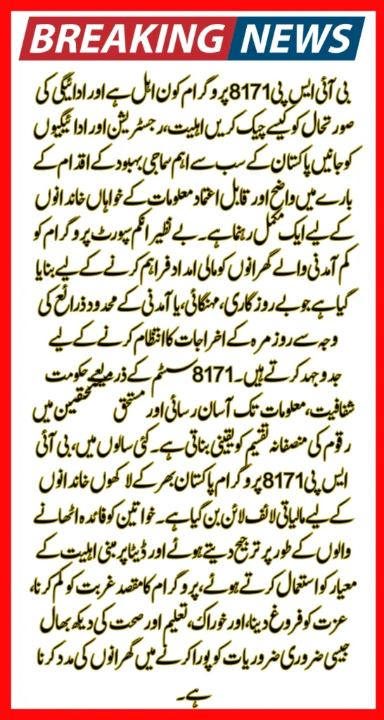The BISP 8171 Program plays a critical role in supporting low-income families across Pakistan. By clearly defining who qualifies and offering simple methods to check payment status, the program ensures transparency and fairness in financial assistance.