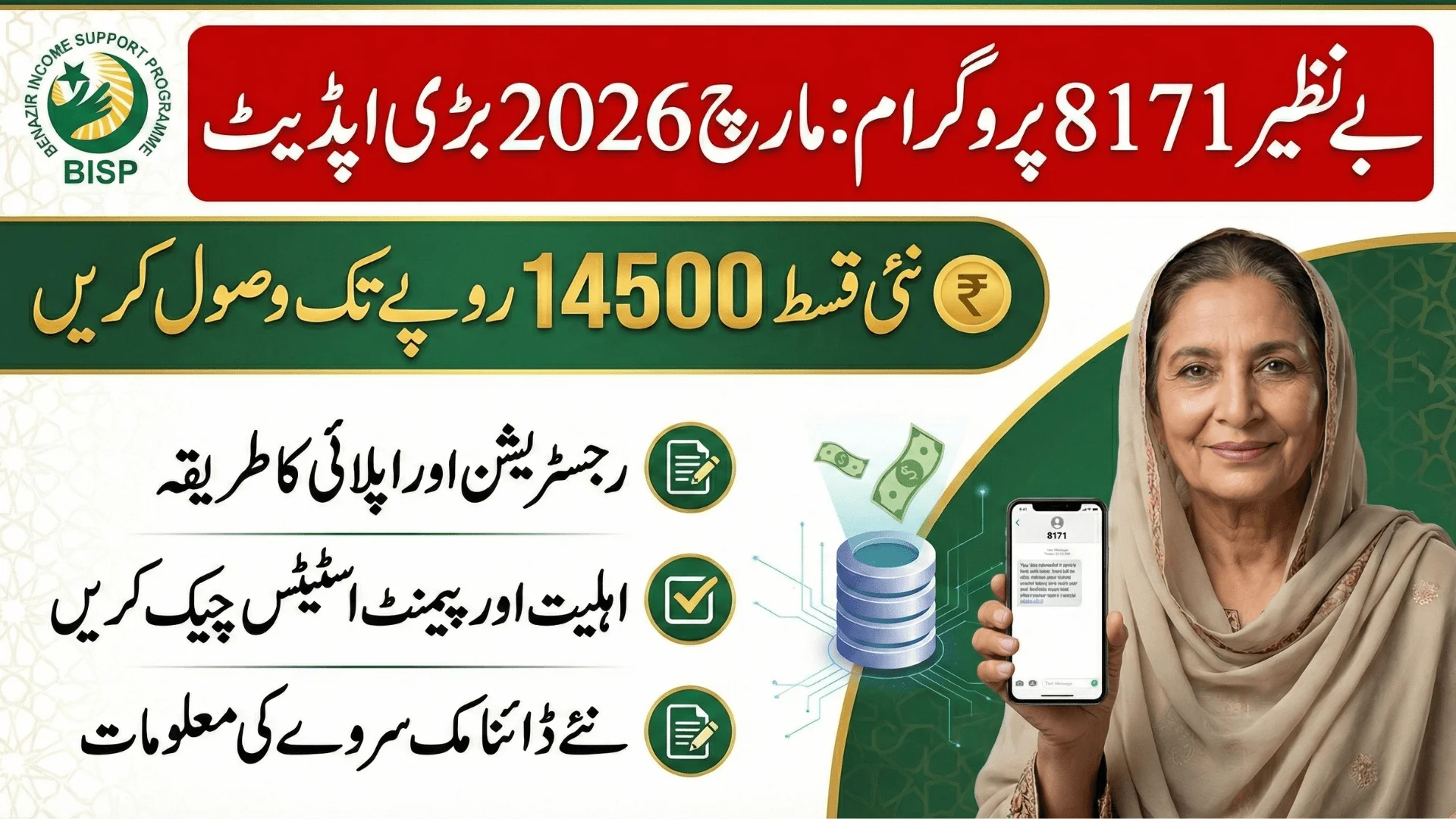 BISP 8171 Registration March 2026 How to Apply & Check 14500 Payment Status brings important updates for families seeking financial assistance in Pakistan. In March 2026, the government introduced fresh improvements in the registration and verification system to ensure quicker approval, secure disbursement, and broader inclusion of deserving households. With revised quarterly payments and improved verification channels, thousands of low-income women are expected to benefit under the enhanced framework of the Benazir Income Support Program.