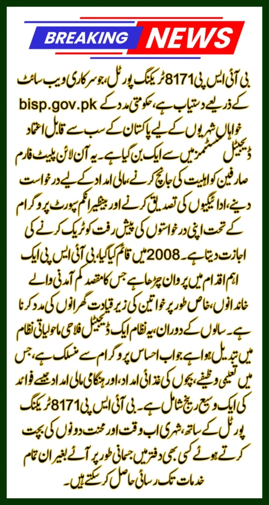 The BISP 8171 Tracking Portal, available through the official website bisp.gov.pk, has become one of Pakistan’s most trusted digital systems for citizens seeking government assistance. This online platform allows users to check eligibility, apply for financial aid, verify payments, and track the progress of their applications under the Benazir Income Support Program.