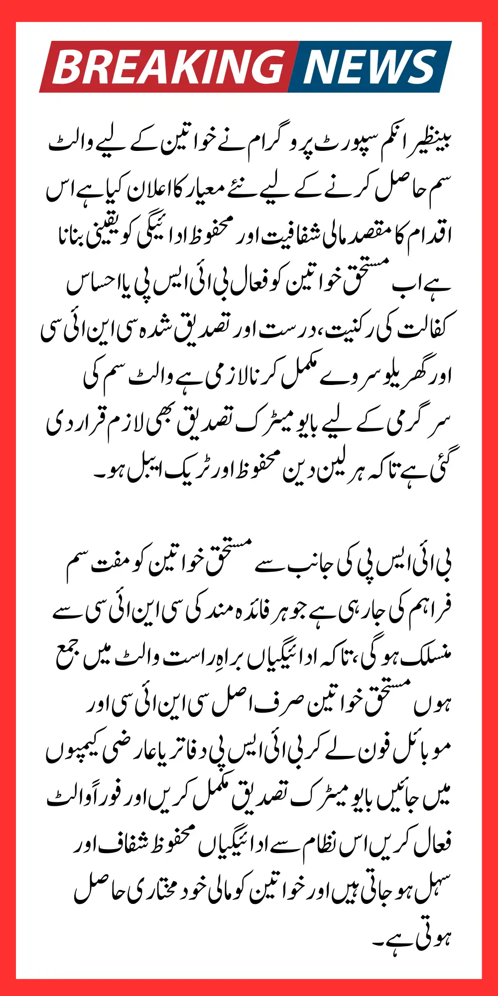 | Biometric Verification | Mandatory at BISP offices or partner wallets (JazzCash, Easypaisa, UBL) |