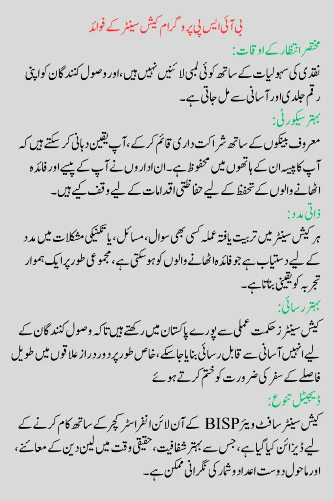 Benefits of BISP Program Cash Center