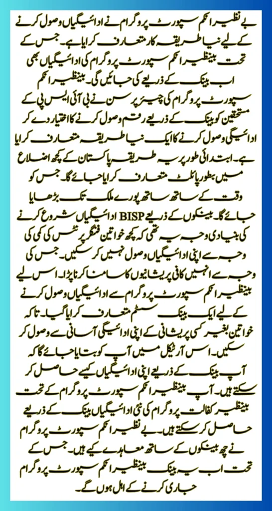 Because of which they had to face a lot of problems. Therefore, a bank system was introduced to receive payments from the Benazir Income Support Program. is so that women can easily receive their payments without any hassle. In this article you will be told how you can receive your payments through the bank.You can receive the new payments of the Benazir Kafalat Program under the Benazir Income Support Program through the bank. Benazir Income Support Program has signed agreements with six banks. Under which these banks will now be eligible to issue Benazir Income Support Program.