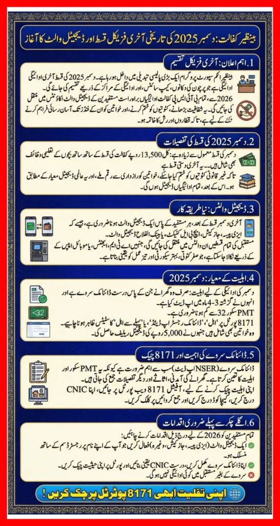 This article explains the December installment details, eligibility criteria, dynamic survey rules, former relief recipients inclusion, wallet transition, and what every beneficiary must do before the next payment cycle.