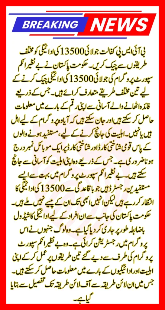 Check BISP Kafalat July 13500 Payment By 4 Easy Methods