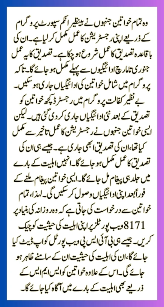 8171 Validation BISP 13500 Amount Online Check Portal Starts