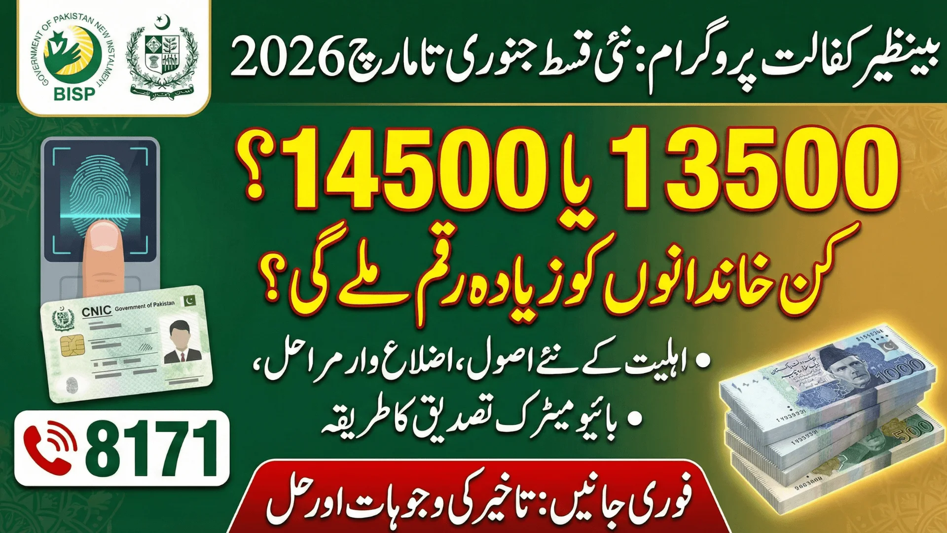 This detailed guide explains the eligibility rules, district-wise payment phases, and verification process, while also clarifying the confusion around payment amounts such as 13,500 PKR and 14,500 PKR. All information is presented clearly to help beneficiaries understand the January–March 2026 cycle.
