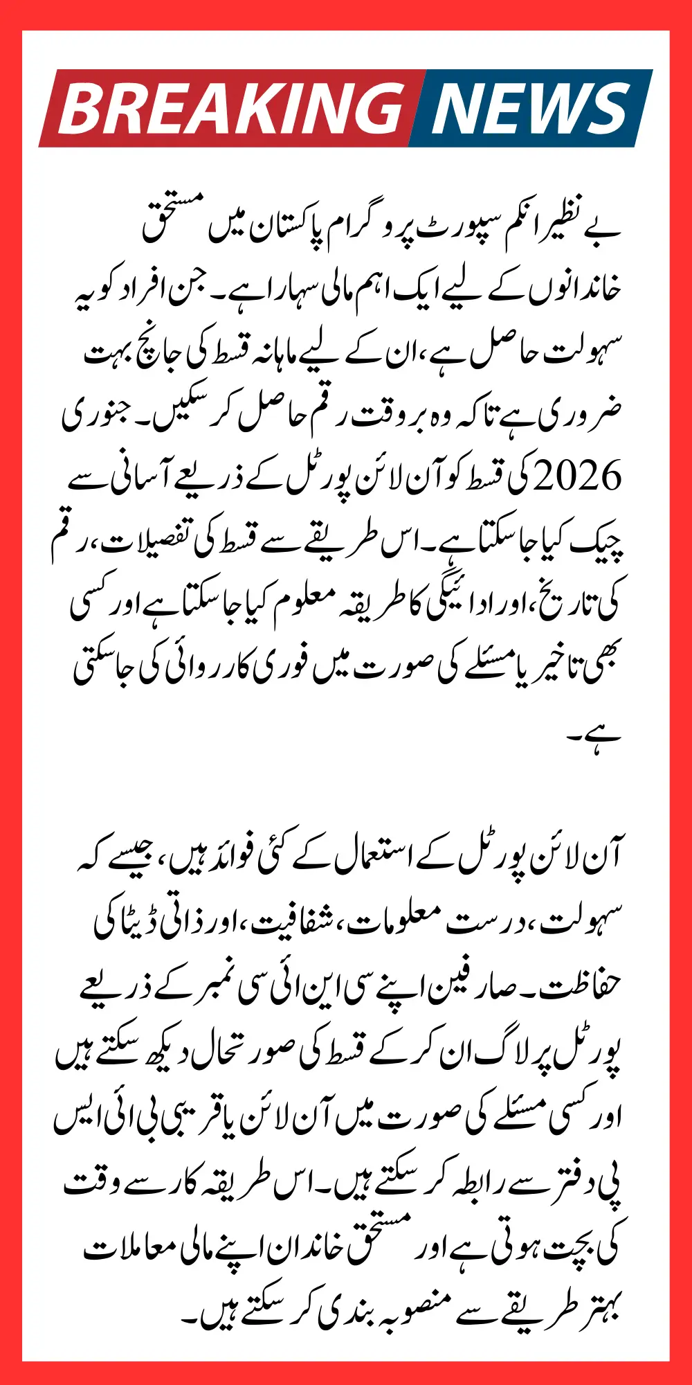 | Support | Contact BISP office or online portal for issues |