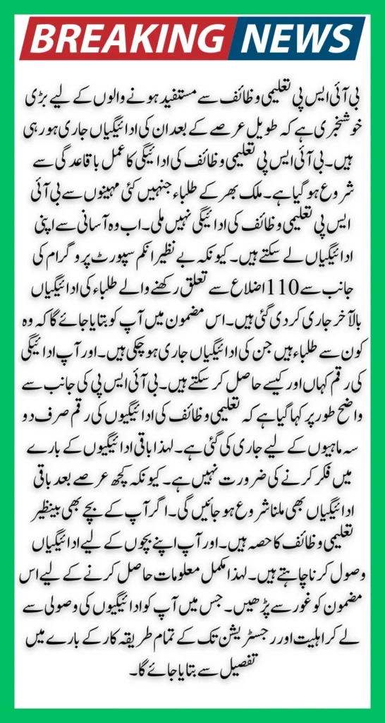 In this article you will be told which are the students whose payments have been released. And where and how you can get the payment amount. It has been clearly stated by BISP that the amount of Taleemi Wazaif has been released only for phase 1. So there is no need to worry about remaining payments.