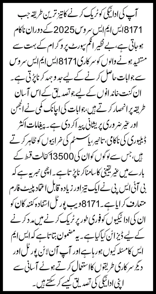 The good news is that BISP has introduced a faster and more dependable platform. The 8171 Web Portal designed to help beneficiaries track their payments instantly. This article explains why the SMS issue is happening and how you can easily verify your payment using the online portal and other official methods.