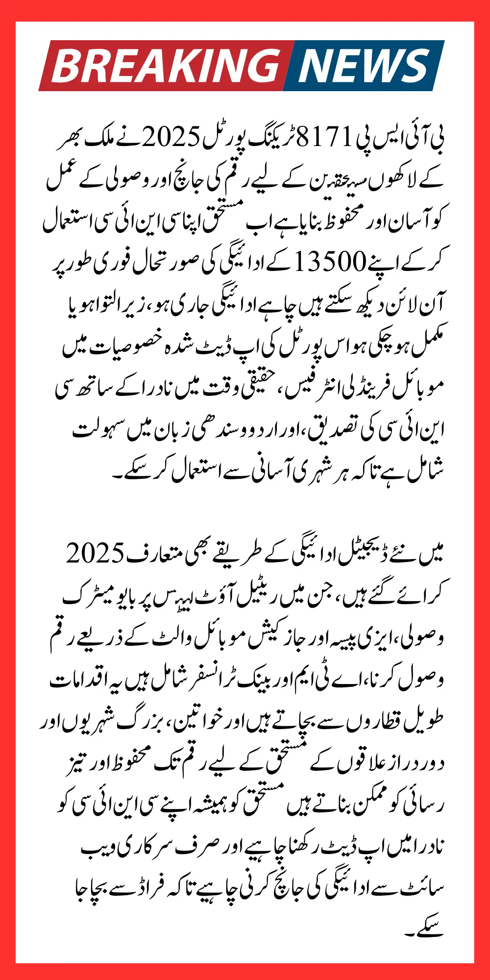 In 2025 the government upgraded the platform to help individuals validate their payments through CNIC in a smoother and faster way Beneficiaries can now track the status of processed pending or ready payments through a single interface this digital transformation has not only increased speed but has also reduced the chances of fraud making the 8171 tracking portal one of the most trusted welfare systems in Pakistan.