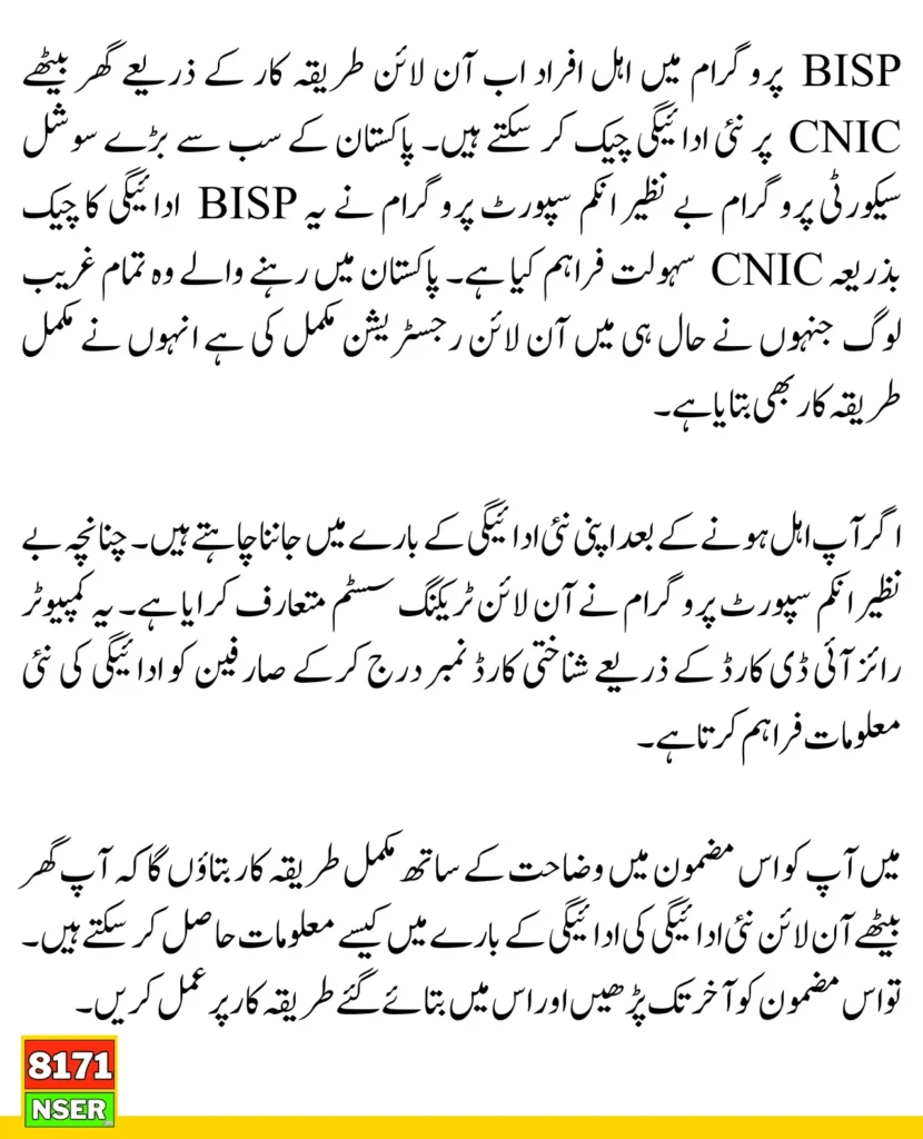 If you want to know about your new payment after being eligible, the Benazir Income Support Program has introduced an online tracking system. This provides new payment information to users by entering the ID card number through the computer used to access the ID card.