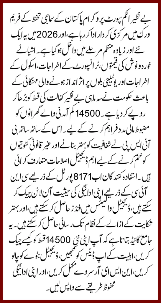 Beneficiaries can now check their payment status online by CNIC through the 8171 portal, receive funds in digital wallets, and access better complaint redressal systems. This comprehensive guide explains how to check your new 14,500 qist, understand eligibility updates, activate digital wallets, complete the NSER survey, and withdraw your payment safely.