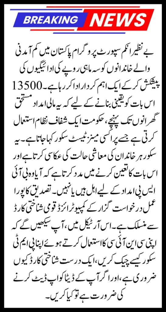 This system ensures that the BISP Rs. 13,500 payment reaches households genuinely struggling with poverty.