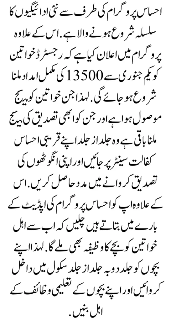 They should visit their nearest Ehsaas Kafalat centre as soon as possible and get help getting their rings verified. Also, we tell you about a new update announced by the Ehsaas program: From now on, eligible women will also get a child stipend. So get your children re-admitted as soon as possible and also be eligible for your children’s Taleemi Wazaif.
