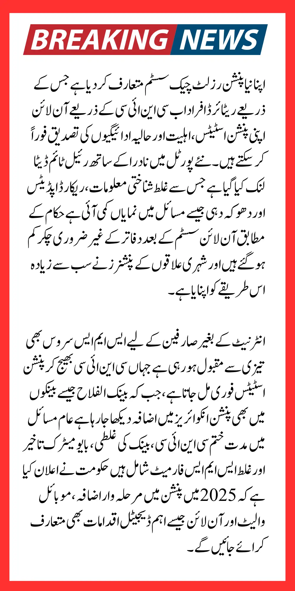 Officials report that urban pensioners have adopted the online method at a rapid pace, thanks to smartphone accessibility Automated system checks ensure that any discrepancies are flagged before payments are processed this has helped reduce complaints linked to suspended or delayed pensions. EOBI expects the platform to continue growing as digital literacy improves across the country.