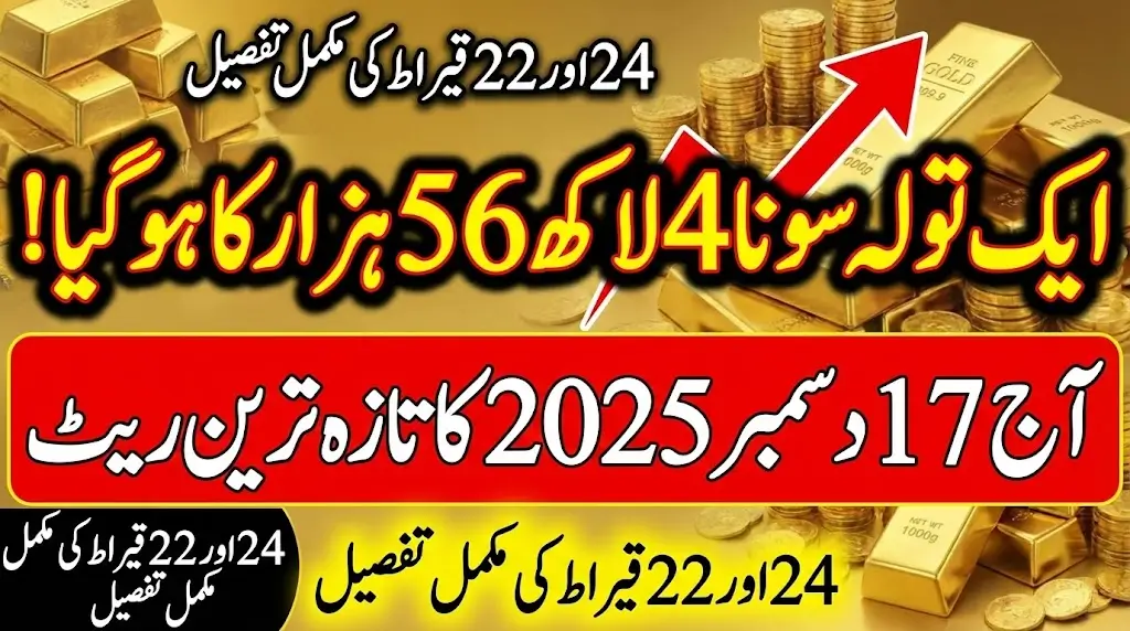 Gold Prices In Pakistan: The gold market in Pakistan has seen notable fluctuations as of 17 December 2025. The 24k gold rate per tola has reached Rs 456,000, while 10 grams of 24k gold costs Rs 390,950. Similarly, 22k gold per tola is priced at Rs 417,965 and 10 grams of 22k gold is Rs 358,368. These prices reflect the ongoing movements in the international gold market, which directly influence domestic rates.