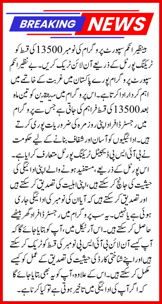Through this portal, beneficiaries can check their payment status, verify their eligibility and confirm whether their November payment has been released or not. All this can be found by the people registered in the program from home. In this article, you will be told how you can track the BISP November installment online and how to complete the process of verifying your identity card status. In addition, you will also be told what to do if your payment is delayed.