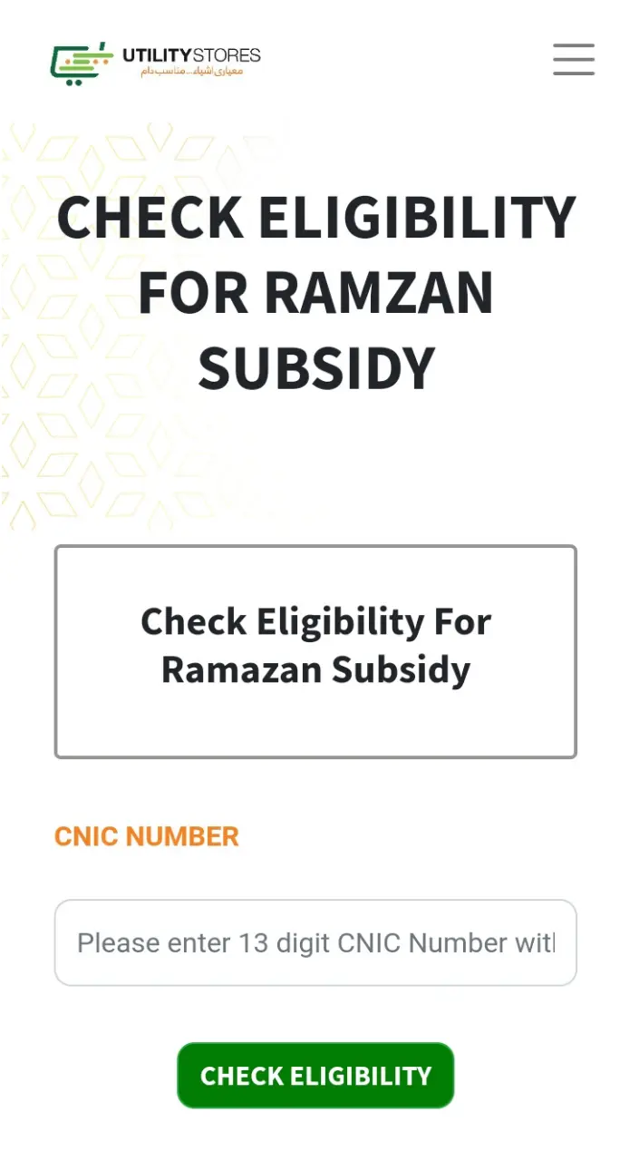 • First, go to the Utility Store’s official website and click on the Ramadan Subsidy Eligibility Check button.