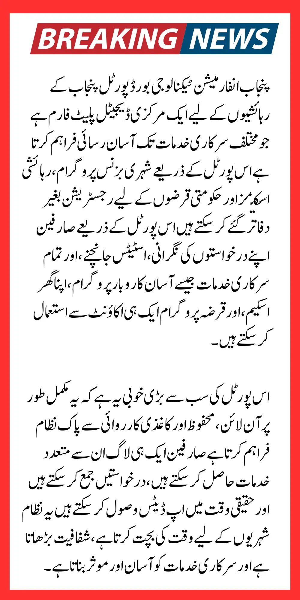 Citizens are encouraged to stay updated on the latest announcements and service improvements by visiting the official PITB website and following verified government social media channels by utilizing the Portal residents of Punjab can save time reduce paperwork and access essential services quickly and securely.