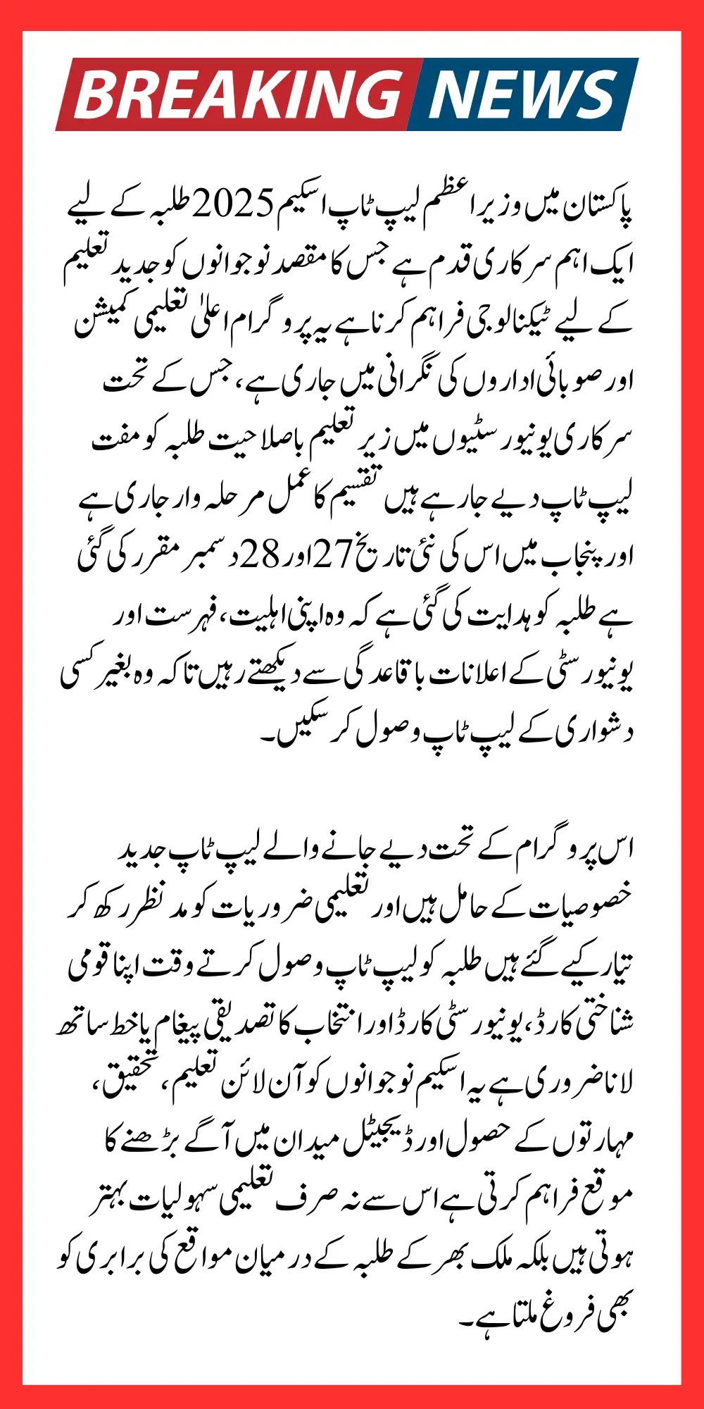 Distribution started in 2025 and will continue in multiple phases until December 27–28, 2025 in Punjab students are encouraged to check their eligibility prepare documents and monitor university portals for updates to ensure they receive their laptops smoothly this article covers essential information including eligibility official distribution dates laptop specifications, and collection procedures.