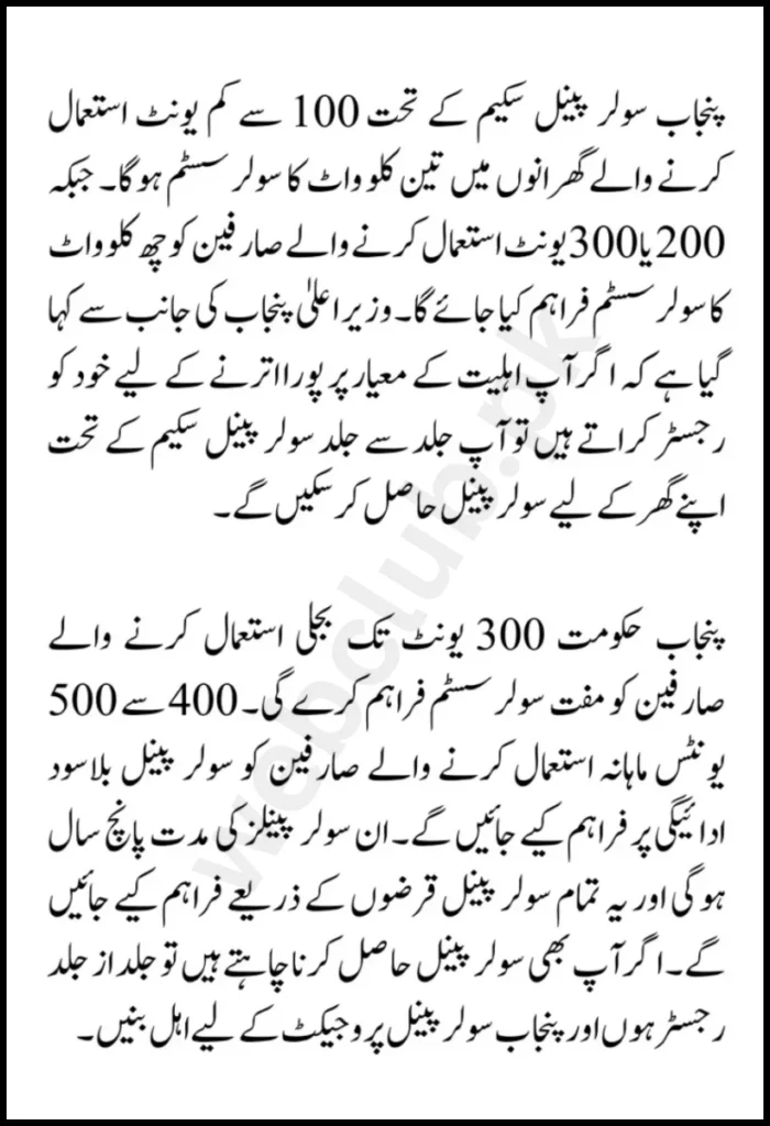 Those people will included in the solar panel project by the government of Punjab, who will be residents of Punjab, and their monthly electricity bill will less than 100 units. In comparison, the monthly income of the applicant will be up to 50 thousand rupees.