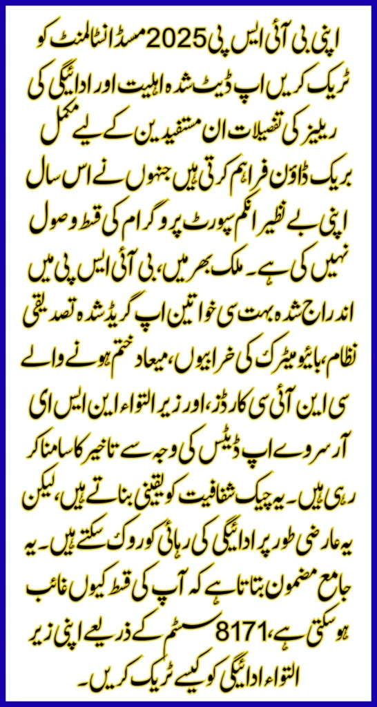 This comprehensive article explains why your installment may be missing, how to track your pending payment through the 8171 system, and the approved process to recover your amount under the 2025 BISP rules.