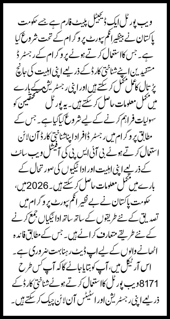 In 2026, the Government of Pakistan has introduced new methods of verification in the Benazir Income Support Program as well as new methods of collecting payments. According to which, staying updated is very important for the beneficiaries. In this article, you will told how you can check your registration and status online through the identity card using the 8171 web portal.